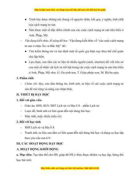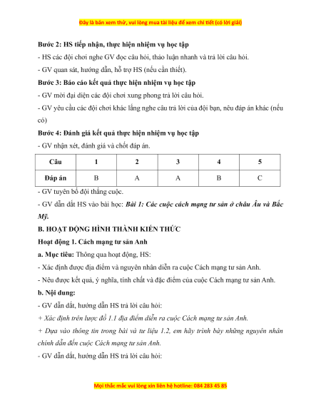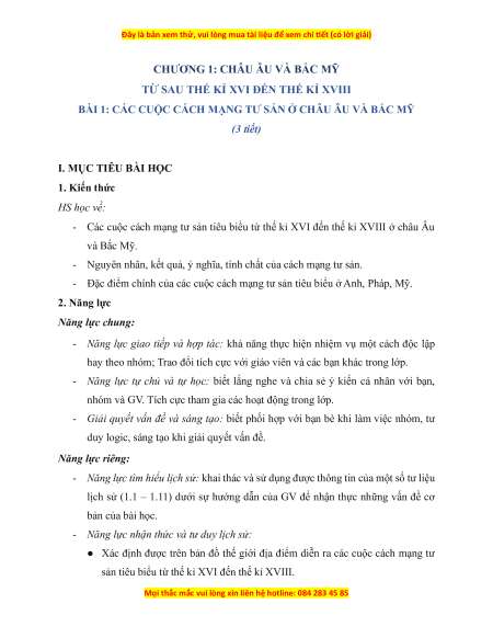 - Đặc điểm chính của các cuộc cách mạng tư sản tiêu biểu ở Anh, Pháp, Mỹ. 2. Năng lực