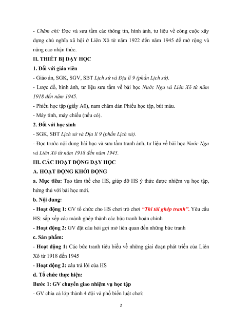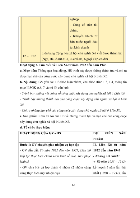 dựng chủ nghĩa xã hội ở Liên Xô. 2. Năng lực Năng lực chung: