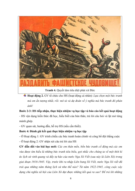 - Hoạt động 1: Các bức tranh tiêu biểu về những giai đoạn phát triển của Liên Xô từ 1918 đến 1945