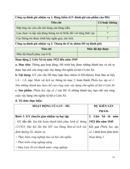 – 1922) và những thành tựu, hạn chế của công cuộc xây dựng chủ nghĩa xã hội ở Liên Xô (1922 – 1945).