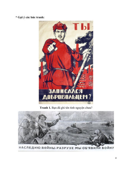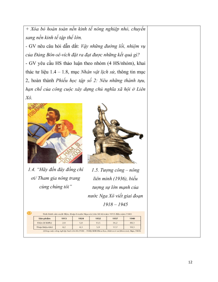 - Hoạt động 1: Các bức tranh tiêu biểu về những giai đoạn phát triển của Liên Xô từ 1918 đến 1945