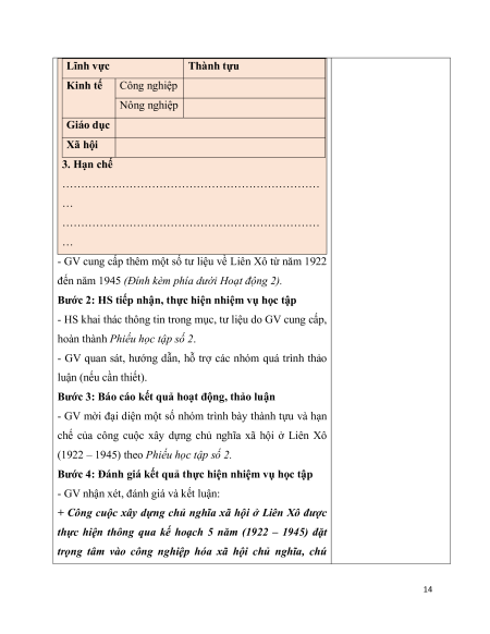 Liên Xô được thành lập; Trình bày được những thành tựu và chỉ ra được hạn chế