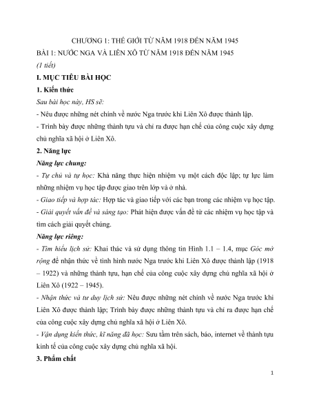 BÀI 1: NƯỚC NGA VÀ LIÊN XÔ TỪ NĂM 1918 ĐẾN NĂM 1945 (1 tiết)