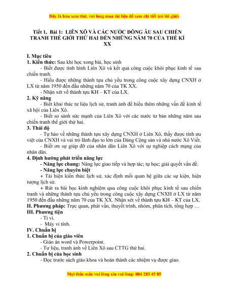 Tiết 1, Bài 1: LIÊN XÔ VÀ CÁC NƯỚC ĐÔNG ÂU SAU CHIẾN