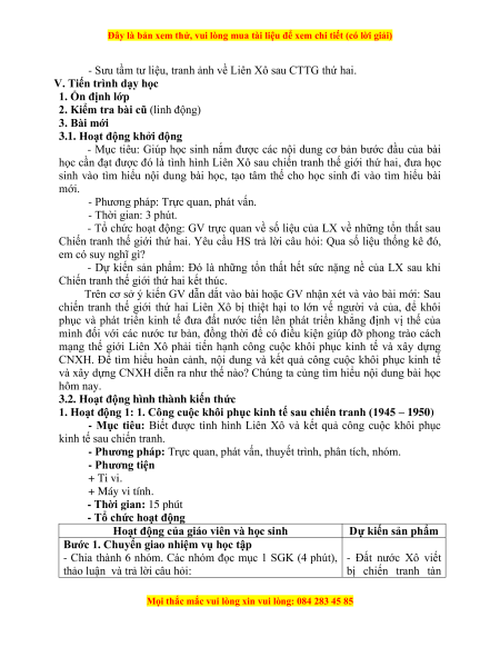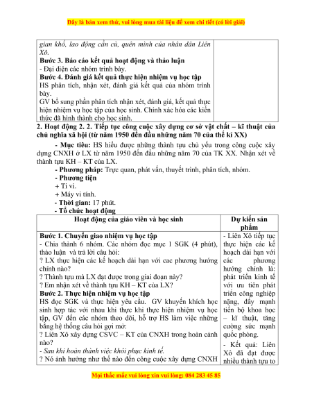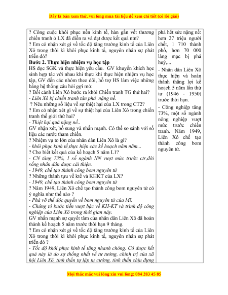 Bước 1. Chuyển giao nhiệm vụ học tập - Liên Xô tiếp tục