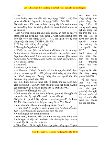 dựng CNXH ở LX từ năm 1950 đến đầu những năm 70 của TK XX. Nhận xét về