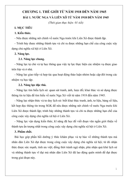 BÀI 1. NƯỚC NGA VÀ LIÊN XÔ TỪ NĂM 1918 ĐẾN NĂM 1945