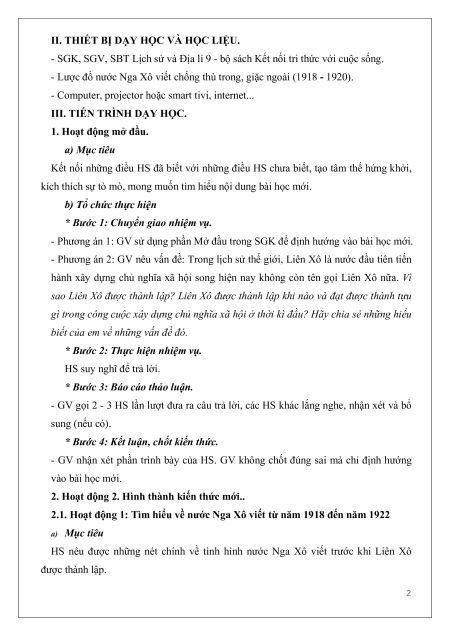 2.1. Hoạt động 1: Tìm hiểu về nước Nga Xô viết từ năm 1918 đến năm 1922 a) Mục tiêu