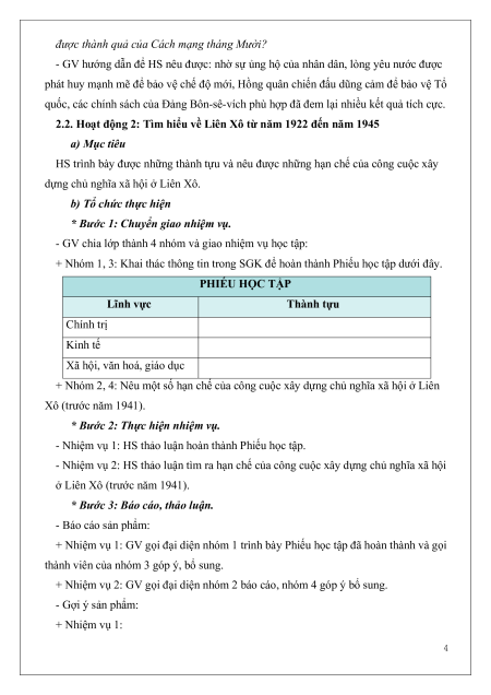 2.2. Hoạt động 2: Tìm hiểu về Liên Xô từ năm 1922 đến năm 1945 a) Mục tiêu