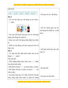 Đây là bản xem th , vu ử i lòng mua tài li u ệ đ xe ể m chi ti t (c ế ó l i ờ gi i ả ) nh SG ư K - HS quan sát các v t ậ d ng ụ Bài 2: - GV cho HS ti p ế xúc v i ớ d ng ụ cụ đo ch a ứ 1 l nư c. ớ - HS các nhóm quan sát các v t ậ d ng ụ đã chu n ẩ bị và dự đoán - Yêu c u ầ m i