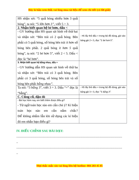 ậ xét: “Bên trái có 2 quả bóng. Bên - HS lấy thẻ dấu < trong bộ đồ dùng, gài vào