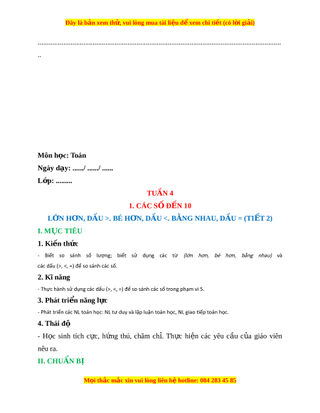 Ngày dạy: ....../ ....../ ...... L p: ớ ......... TUẦN 4 1. CÁC S Đ Ố ẾN 10 L N Ớ H N
