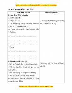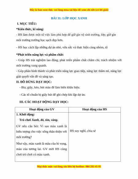BÀI 31: LỚP HỌC XANH I. MỤC TIÊU: