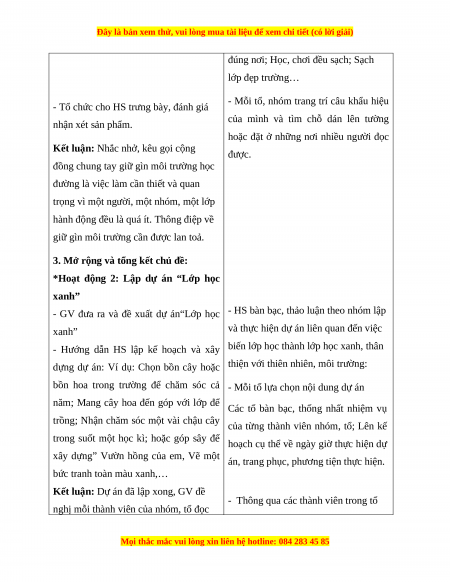 - HS thực hiện kế hoạch đã lập ra ở tiết trước: thực hiện dự án “Lớp học xanh”. HS