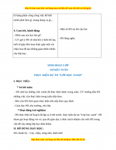 - Hướng dẫn HS lập kế hoạch và xây biến lớp học thành lớp học xanh, thân