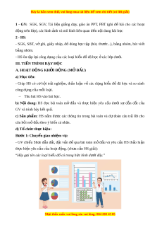 ằ g, đánh giá chính xác bài làm c a ủ nhóm mình và nhóm b n ạ . - Tự tin trong vi c ệ tính toán; gi i ả quy t ế bài t p ậ chính xác. II. THI T Ế B Ị D Y Ạ H C Ọ VÀ H C Ọ LI U Ệ M i