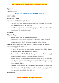 LỰC CĂNG MẶT NGOÀI CỦA NƯỚC (2 TIẾT) I. MỤC TIÊU: