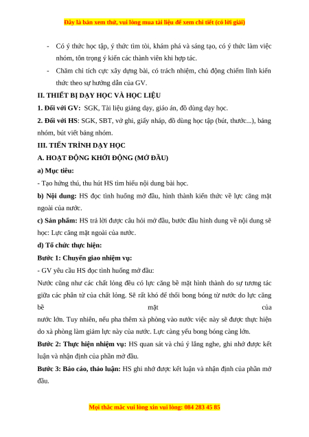 LỰC CĂNG MẶT NGOÀI CỦA NƯỚC (2 TIẾT)