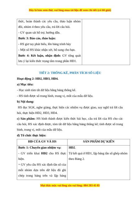 - HS tính được số trung bình, trung vị, mốt của mẫu dữ liệu.