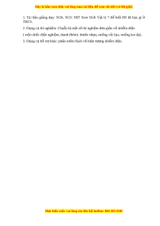 Đây là bản xem th , vu ử i lòng mua tài li u ệ đ xe ể m chi ti t ế (có l i ờ gi i ả ) 1. Tài li u ệ gi ng ả d y: ạ SGK, SGV, SBT Xem SGK V t ậ lý 7 để bi t ế HS đã h c ọ gì ở THCS. 2. D ng ụ c ụ thí nghi m: ệ Chu n ẩ b ịm t ộ s ố thí nghi m ệ đ n ơ gi n ả v ề nhi m ễ đi n ệ ( m t ộ chi c ế đi n ệ nghi m ệ , thanh êbônit, thư c ớ nh a ự , mi ng ế v i ả l a ụ , mi ng ế len d ) ạ . 3. D ng ụ c ụ hỗ tr ợ khác: ph n ầ m m ề flash v ề hi n ệ tư ng ợ nhi m ễ đi n. ệ M i ọ thắc m c
