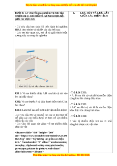định luật Cu – lông vào vi c ệ gi i ả các bài toán đ n ơ gi n ả v ề cân b ng ằ c a ủ h ệ đi n ệ tích đi m. ể - Giải thích đư c ợ các hi n ệ tư ng ợ nhi m ễ đi n ệ trong th c ự t . ế - Rèn luy n ệ kĩ năng v n ậ d ng ụ lí thuy t ế vào th c ự t ế bài h c ọ . - Giải các bài toán v ề l c ự Cu-lông và t ng ổ h p ợ các vect ơ l c ự 3. Phát tri n ể phẩm ch t ấ ● Chăm ch ,ỉ tích c c ự xây d ng ự bài. ● Ch ủ đ ng ộ trong vi c ệ tìm tòi, nghiên c u ứ và lĩnh h i ộ ki n ế th c ứ .