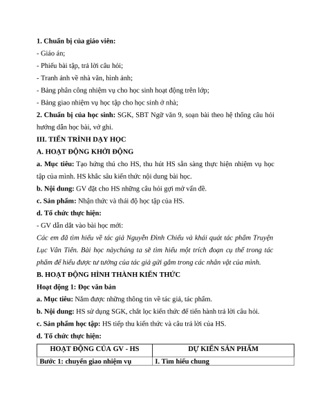2. Chuẩn bị của học sinh: SGK, SBT Ngữ văn 9, soạn bài theo hệ thống câu hỏi