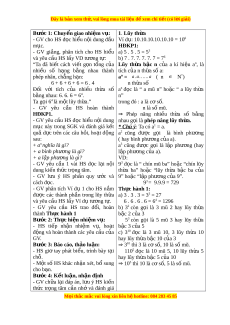ọ là “ chín mũ ba” ho c ặ “chín lũy dung ki n t ế h c t ứ r ng t ọ âm. th a ừ ba” ho c ặ “lũy th a ừ b c ậ ba c a ủ - GV l u ư ý HS ph n ầ quy ư c ớ và 9” hoặc “l p ậ phư ng c ơ a ủ 9”. cách đ c. ọ 93 = 9.9.9 = 729 - GV phân tích Ví d ụ 1 cho HS n m ắ Thực hành 1: đư c ợ các thành ph n ầ trong lũy th a ừ a) 3 . 3 . 3 = 33 = 27