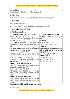 các HS khác chú ý và nh n ậ xét, bổ sung. Bư c ớ 4: K t ế lu n, nh ậ n đ ậ nh ị - GV chốt l i ạ đáp án, l u ư ý HS và cho HS nh c ắ l i ạ quy t c ắ nhân hai lũy th a ừ cùng c s ơ ố. Hoạt đ ng 3: ộ