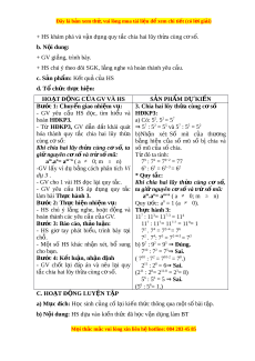 - Nhân, chia hai lũy th a cùng có s ừ ố và số mũ t nhi ự ên. 2. Năng l c ự - Năng l c r ự iêng: + Tính đư c gi ợ á tr c ị a m ủ t ộ lũy th a. ừ + Th c hi ự n phép nhân, phép chi ệ a hai lũy th a ừ cùng c s ơ ố v i ớ s m ố ũ t nhi ự ên. - Năng l c