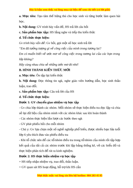 Đây là bản xem th , vu ử i lòng mua tài li u ệ đ xe ể m chi ti t ế (có l i ờ gi i ả ) a. M c ụ tiêu: T o ạ tâm thế h ng ứ thú cho h c ọ sinh và t ng ừ bư c ớ làm quen bài h c. ọ b. N i