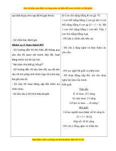 ứ thú, say mê các con số để gi i ả quy t ế bài toán. - Yêu lao đ ng, ộ phát huy tính trung th c, ự ý th c ứ chủ đ ng, ộ trách nhi m ệ và b i ồ dư ng ỡ s t ự t ự in, h ng t ứ hú trong vi c h ệ c. ọ II. PHƯ N Ơ G PHÁP VÀ THI T Ế B D Ị Y Ạ H C Ọ 1. Phư ng ơ pháp d y h ạ c ọ - Vấn đáp, đ ng ộ não, tr c ự quan, ho t ạ đ ng ộ nhóm, gi i ả quy t ế v n ấ đ , ề l ng ắ nghe tích c c. ự 2. Thi t ế b d ị y h ạ c ọ a. Đ i ố v i ớ giáo viên: - SGK, tài li u d ệ y h ạ c, t ọ ranh nh ả liên quan. b. Đ i ố v i ớ h c s ọ inh - SGK, v ghi ở , đ dùng h ồ c t ọ p, ậ b ng nhóm ả . III. CÁC HO T Ạ Đ N Ộ G D Y Ạ H C Ọ HOẠT Đ N Ộ G C A Ủ GIÁO VIÊN HOẠT Đ N Ộ G C A Ủ H C Ọ SINH