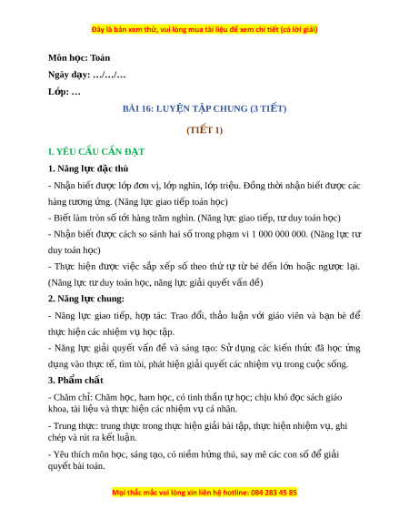 Ngày dạy: …/…/… L p: ớ … BÀI 16: LUY N Ệ T P Ậ CHUNG (3 TI T Ế ) (TIẾT 1)