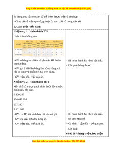 áp d ng quy t ụ c ắ so sánh số đ ch ể n ọ đư c ch ợ ữ số phù h p. ợ - C ng ủ cố v c ề ấu t o s ạ ố, giá tr c ị a các ủ ch s ữ t ố rong m t ộ số b. Cách th c t ứ i n hành ế Nhi m ệ v 1: ụ Hoàn thành BT1 Hoàn thành b ng ả sau. - GV in b ng r ả a phi u và yêu ế c u H ầ S hoàn