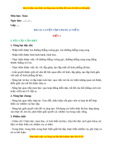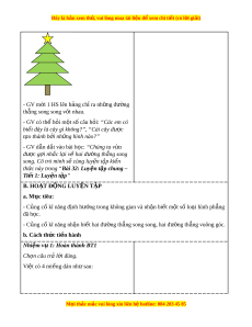 rong “Bài 32: Luy n t ệ p chung – ậ Ti t ế 1: Luy n t ệ p ậ ” B. HO T Ạ Đ N Ộ G LUY N Ệ T P Ậ a. Mục tiêu: - C ng ủ cố kĩ năng đ nh h ị ư ng t ớ rong không gian và nh n bi ậ t ế m t ộ s l ố o i ạ hình ph ng ẳ đã h c. ọ - C ng ủ cố kĩ năng nh n bi ậ t ế hai đư ng ờ th ng s ẳ ong song, hai đư ng ờ th ng vuông góc. ẳ b. Cách th c t ứ i n hành ế Nhi m ệ v 1