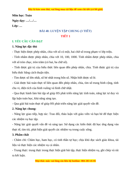 BÀI 48: LUYỆN TẬP CHUNG (3 TIẾT) TIẾT 1