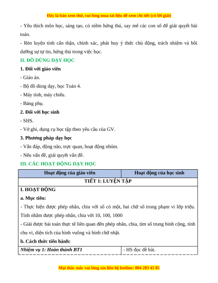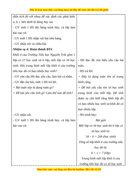 - Giải được bài toán thực tế liên quan đến phép nhân, chia, tìm số trung bình cộng, tính