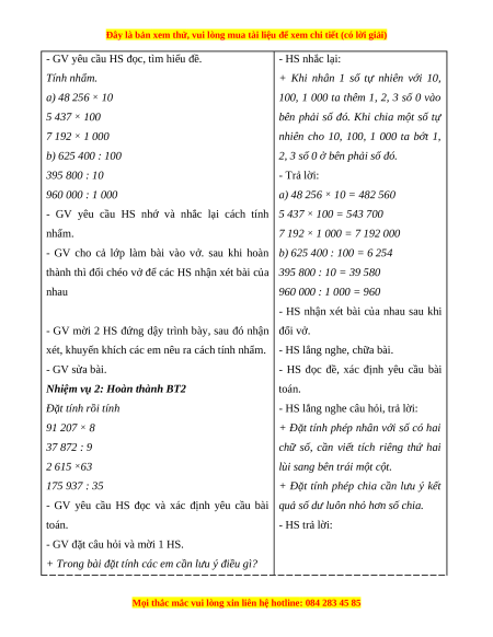 - Tính nhẩm được phép nhân, chia với 10, 100, 1000. Tính nhẩm được phép nhân, chia