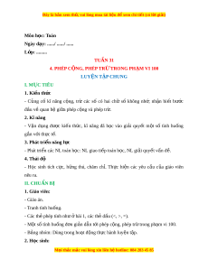 Ngày dạy: ....../ ....../ ...... L p: ớ ......... TUẦN 31 4. PHÉP C N Ộ G, PHÉP TR Ừ TRONG PH M Ạ VI 100 LUYỆN TẬP CHUNG I. M C Ụ TIÊU 1. Ki n t ế h c ứ - C ng ủ cố kĩ năng c ng, ộ