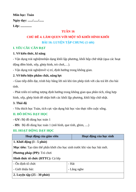 Ngày dạy: ....../....../...... Lớp: .............. TUẦN 16