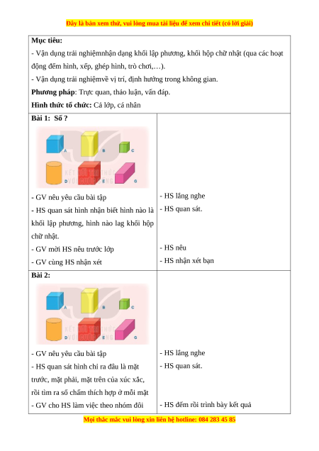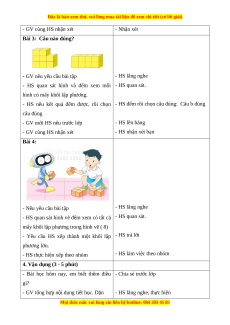 - Vận dụng trải nghiệmnhận dạng khối lập phương, khối hộp chữ nhật (qua các hoạt