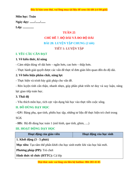 BÀI 28: LUYỆN TẬP CHUNG (2 tiết) TIẾT 1: LUYỆN TẬP