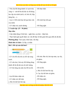 b. Cục tẩy dài hơn cái ghim. - Gọi HS khác nhận xét. - HS nhận xét. - GV nhận xét, kết luận - HS lắng nghe.
