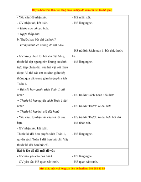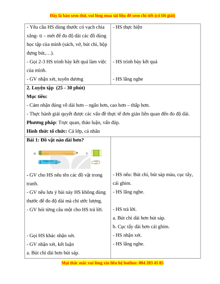 - HS trả lời: Sách Toán 1dài hơn.