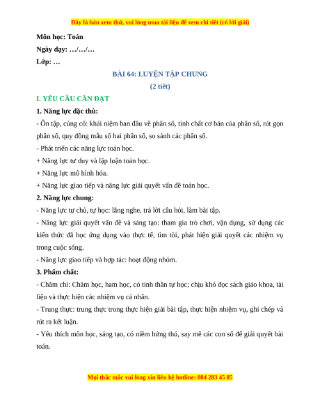 BÀI 64: LUYỆN TẬP CHUNG (2 tiết)