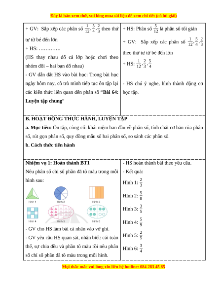 các kiến thức liên quan đến phân số “Bài 64: học tập. Luyện tập chung”