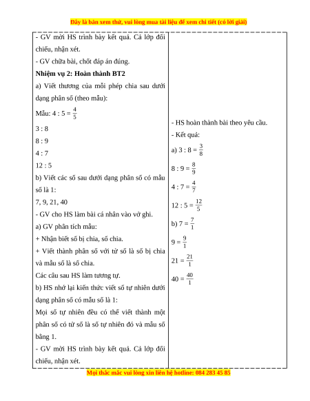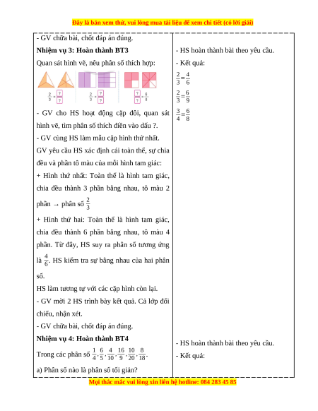 - Ôn tập, củng cố: khái niệm ban đầu về phân số, tính chất cơ bản của phân số, rút gọn
