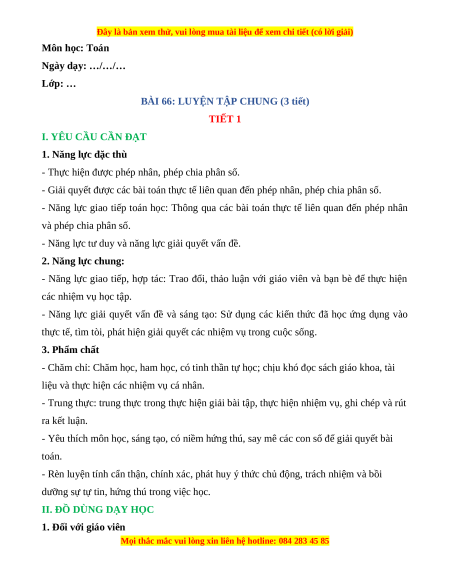 BÀI 66: LUYỆN TẬP CHUNG (3 tiết) TIẾT 1