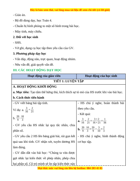 - Ôn tập, củng cố kĩ năng thực hiện phép nhân, phép chia phân số.