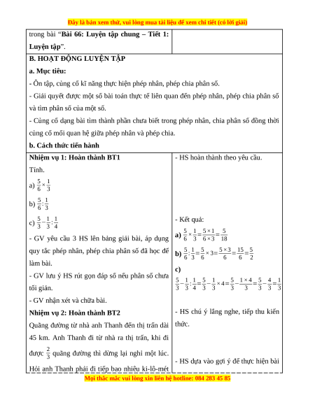 - Giải quyết được các bài toán thực tế liên quan đến phép nhân, phép chia phân số.