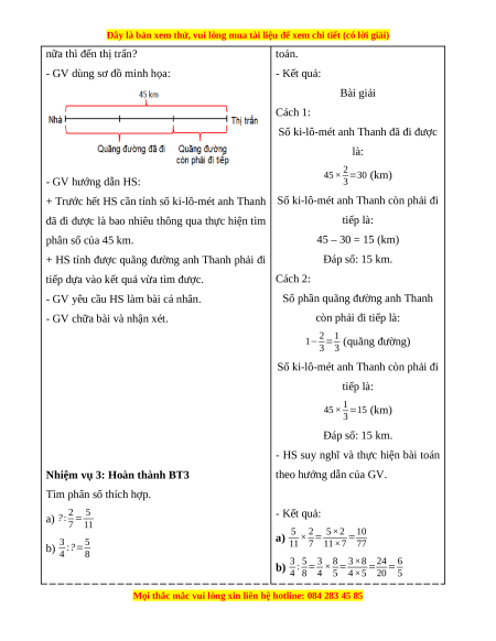 Số ki-lô-mét anh Thanh đã đi được là: 2 45 × =30 (km) - GV hướng dẫn HS: 3
